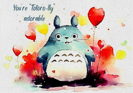 "Totoro" Love Heart Blank Greetings Card - Watercolour. Customisable. Valentine's Day. Birthday. Any Occasion. Studio Ghibli Fan Art