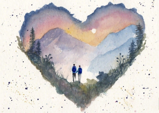 Couple Hiking with Dog, Original Watercolour, Hand Painted - Blank Greetings Card (3 options)