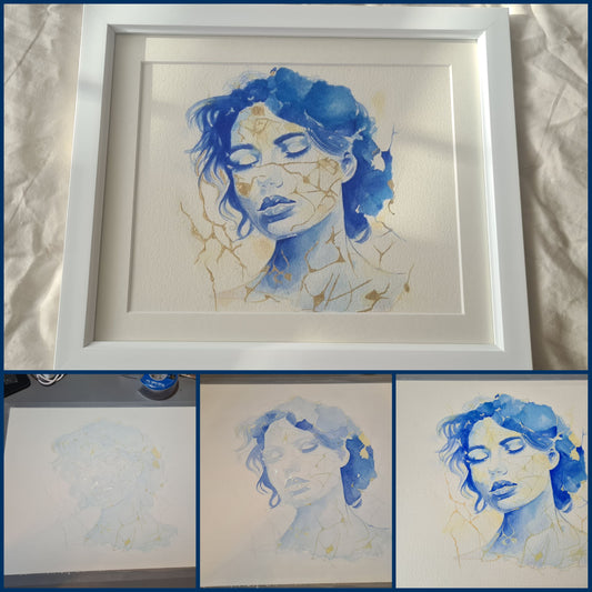 "Kintsugi" Inspired Watercolour Print with hand gilded Gold Leaf - "Portrait of a Woman"